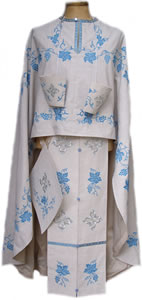 Embroidered on: phelon, belt, stole, cuffs,palitza, Set of Chalice Cover
